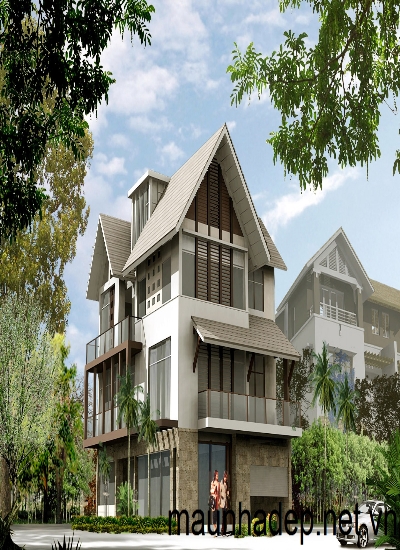 3. Phong cách kiến trúc: Biệt thự 4 tầng mái dốc.